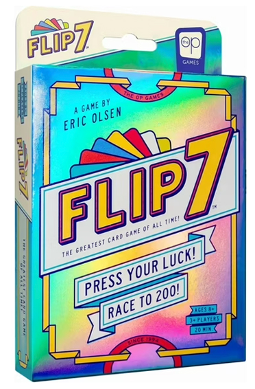 Sound easy? Think again! This isn’t just any deck of cards… In Flip 7 there’s only one 1 card, two 2’s, three 3’s, etc plus a bunch of special cards that can score you extra points, give you a second chance, or freeze you or your opponents in your tracks.