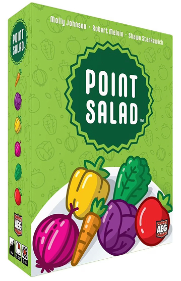 Point Salad is a fast and fun card-drafting game for the whole family. There are over 100 ways to score points. Players may use a variety of strategies, and every game of Point Salad is unique!