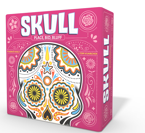 Skull & Roses is the quintessence of bluffing, a game in which everything is played in the players’ heads. Each player plays a face-down card, then each player in turn adds one more card, until someone feels safe enough to state that they can turn several cards face up and get only roses. Other players can then overbid them, saying they can turn even more cards face up. The highest bidder must then turn that number of cards face up, starting with their own. If they show only roses, they win; if they reveal a skull, they lose, placing one of their cards out of play. Two successful challenges win the game. Skull & Roses is not a game of luck; it’s a game of poker face and meeting eyes.